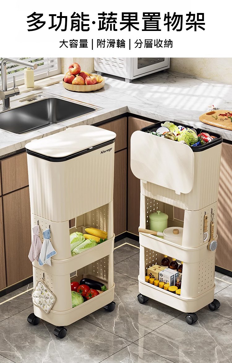 20分鐘前【不彎腰】家用可移動多功能置物垃圾桶 - 【超殺*贈20垃圾袋】1入組$279